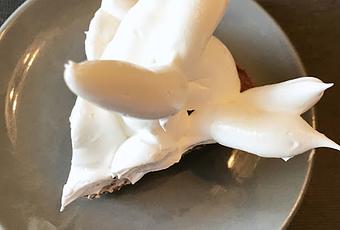 Se monta la nata con el azúcar en la batidora y se le añade el chocolate sin dejar de batir.