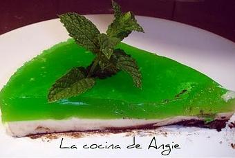 - Capa de queso: calentar ½ vaso de ron (o ron mojito), 1 vaso de agua y 100 grs. de azúcar moreno, removiendo hasta que se disuelva. Agregar el zumo y la ralladura de 3 limas, 15 hojas de hierbabuena, y dejar cocer a fuego suave unos 20´. Dejar enfriar y colar. Volver a calentar y añadirle un sobre de gelatina neutra. Cuando ésta se haya disuelto, fuera del fuego, añadir 300 grs. de queso de untar y volver a mezclar todo bien. Poner la mezcla en el molde con la base de galletas y dejar en la nevera hasta que se solidifique.