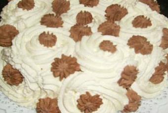 Separamos como ¼ de nata montada, y la que nos queda ½ kilo, la ponemos en una manga con la boquilla rizada.