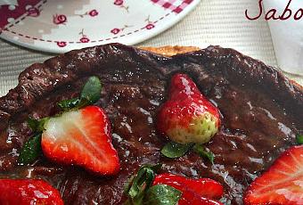 Masa quebrada dulce200 gramos de harina de repostería, 100 gramos de mantequilla, 1 huevo, 50 gramos de azúcar glass......., una pizca de salPARA LAS NATILLAS DE CHOCOLATE .1 sobre de natillas de chocolate 1 tableta de chocolate negro de 200 gr 1/2 brik de nata liquida y 2 vasos de leche entera 100 gr de azúcar 8 Fresones para decorar y mermelada rebajada de ciruela para pintar .