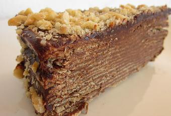 - En un plato poner una oblea y, con una espátula, repartir un par de cucharadas soperas de crema de cacao, cubriendo con una fina capa toda la superficie.