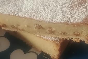 Para hacer el relleno calentar la leche con la nata y cuando esté hirviendo retirar del fuego y agregar, la ralladura elegida, las pasas y la sémola. Dejar reposar 20 minutos para que se sigan hidratando las pasas y se hidrate la sémola. Pasado este tiempo batir las yemas con el azúcar y añadir la almendra molida. Agregar a la preparación anterior y por último montar las claras a punto de nieve y con cuidado añadir a la mezcla anterior. Verter la crema obtenida en el molde o moldes, ya forrados, y cocer en el horno a 190º C durante 30-35 minutos.Si se desea se puede dar una precocción a la masa quebrada de 15 minutos y así nos aseguramos de que nunca quedará cruda.Una vez hecha dejar enfriar totalmente y a la hora de servir salpicar con azúcar glas y decorar con motivos de Pascua, si se desea.