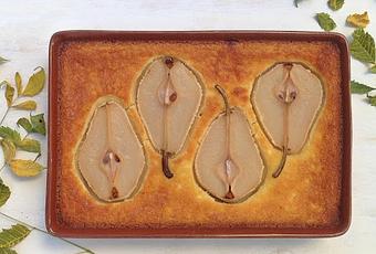 Colocamos en un bol los huevos, el requesón, la nata, la vainilla y el azúcar. Batimos y añadimos la harina integrando bien. Volcamos esta preparación en el molde, sobre la masa precocida y por último ponemos las peras.Cocinamos en horno a 180º durante 45 minutos aproximadamente.