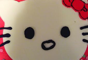 - Para hacer la hello kitty podéis descargaros la imagen e imprimirla en tamaño folio. La recortáis y hacéis la forma con el fondant. Yo la hice a ojo, ¡¡ me gusta el riesgo! !