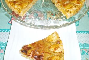 Con un cortapastas hacer las figuras que te gusten de los recortes de masa quebrada y de mazapán y colocarlas sobre el el pastel. Pinchar en el centro para permitir la salida del vapor.