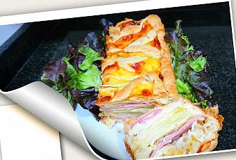Esta es una receta de una página que me paso mi amiga Chefclub España tienen unas recetas muy originales como esta y exquisitas.INGREDIENTES:2 puerros150 gr de nata fresca1 masa brisa5 lonchas de jamón cocido150 gr de nata para cocinar100 gr de queso para gratinar1 queso reblonchonSal y pimienta 3 huevosELABORACIÓN:Incorporaremos la nata con los huevos, el queso para gratinar y salpimentar al gusto. Cortaremos las puntas verdes de los puerros y luego cortaremos las partes blancas en tres tiras. A continuación, cortaremos el trozo de queso en lonchas de jamón dobladas por el medio.Colocaremos la masa en un molde rectangular y retiraremos el exceso de masa. Luego, colocaremos las tiras de puerro, jamón y queso aleatoriamente. Verter la preparación de la mezcla que hemos preparado de la nata con los huevos en el molde. Luego cortaremos los sobrantes de la masa en forma de tiras y los colocaremos encima en forma de cruces diagonales sobre la tarta. Hornearemos a 180ºC .