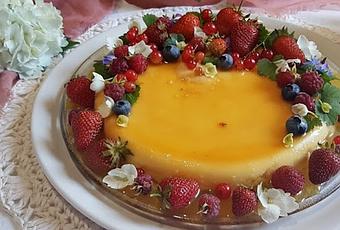 - A la hora de servir, la adornamos a nuestro gusto, en esta ocasión aproveché mi cosecha de frutos rojos y algunas flores y quedó así de bonita.