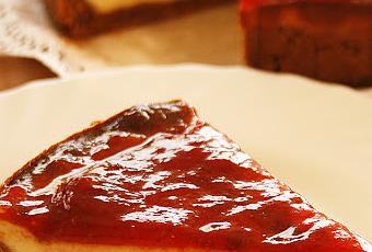 Primero, elaborar la base y simplemente trituras en el vaso de la batidora las galletas María y lo mezclas con la mantequilla derretida. Presionas el fondo del molde y reservas. Luego, agregar el resto de los ingredientes al vaso de la batidora y mezclar hasta unir. Agregar al molde por encima de la base de galleta y hornear a fuego suave. De vez en cuando agitar el molde para constatar que vaya cuajando adecuadamente. No explico a qué temperatura debe estar el horno porque mi horno sólo indica alto o medio y no los grados que deben ser horneado los alimentos. Una vez frío a temperatura ambiente retirar el molde y agregar por encima mermelada de fresa y a disfrutar. Hace mucho elaboré una tarta similar a esta excepto que llevó chocolate por encima. Si deseas verlo, este es el enlace: http://bocadillosuculento.blogspot.com.es/2010/06/tarta-de-queso_24.html