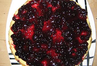 Retiramos y dejamos que se enfríe a temperatura ambiente. Una vez esté fría la desmoldamos y la decoramos con la mermelada que hayamos elegido.