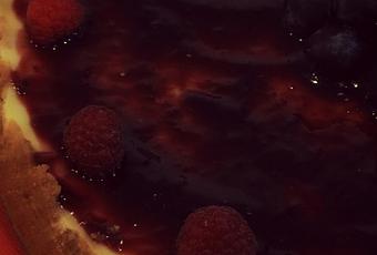 500 gr. queso mascarpone250 gr. creme freiche125 gr. mantequilla150 gr. galletasZumo de medio limónZumo de una lima200 gr. azúcar1 cucharada de maicena4 huevosMermelada de uvas al vino tintoThermomixTrituramos las galletas en la thermomix, programa 10 seg/vel5-10 progresivamente, añadimos la mantequilla derretida, programa 10 seg/vel 1, echamos la mezcla en el molde y cubrimos la base con la crema de galletas.Echamos en el vaso los dos quesos, la crema fraice, el azúcar, los zumo de limón y lima, programa 6 min/vel 4, bajamos la velocidad a 2 y vamos añadiendo por el bocal los huevos de uno en uno, cuando esten los huevos incorporados a la mezcla, subimos la velocidad a 4, durante 1 minuto, añadimos a continuación la maicena, programa 30 seg/vel 4.Echamos la mezcla en el molde, horneamos 45 minutos, los primeros 15 minutos a 180º, después bajamos la temperatura a 100º, pasado el tiempo de horneado, dejamos enfriar la tarta dentro del horno apagado, con la puerta cerrada. Una vez fria, cubrimos la tarta con la mermelada de uvas al vino tinto.Decorar con uvas y frambuesas.TradicionalMezclamos la mantequilla derretida con las galletas trituradas, cubrimos la base del molde con esta mezcla. Reservamos en el frigorífico.En un bol mezclamos los dos quesos con la creme freiche, el zumo de limón y lima y el azúcar, después vamos añadiendo los huevos de uno en uno sin dejar de mezclar, por último añadimos la maicena, y mezclamos bien hasta que se incorpore a la crema.Echamos en el molde sobre la base de galletas y horneamos 180º durante 15 minutos, luego bajamos a 100º durante 30 minutos, pasado ese tiempo dejamos enfriar en el horno apagado con la puerta cerrada.Decoramos la tarta con la mermelada de uvas al vino tinto, y con uvas y frambuesas.