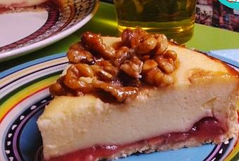 Tarta de queso con nueces y miel o tarta de invierno. Faltan un par de semana para terminar este frío invierno y nada mejor para despedirlo que un rico pastel.La receta básica lleva requesón y almidón, pero no tenia en casa ninguno de esos dos ingredientes. Así que la hice con lo que tenia en el armario de la cocina y la nevera.