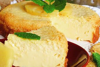200 gr. de leche condensada150 gr. de queso de untar2 rodajas de piña en almíbar50cc. del jugo de la piña25 gr. de coco rallado3 huevos15 gr. de harina fina de maíz(maicena)En un recipiente poner todos los ingredientes y triturar bien.Verter en el molde, dar unos golpecitos en la encimera para que se asiente bien la masa y no quede aire en su interior.Hornear a 180 º durante unos 30 minutos, encendido arriba y abajo, hasta que esté cocido.Apagar el horno y dejar la puerta un poco abierta, dejar unos 20 minutos.Sacar la tarta del horno, desmoldar y dejar enfriar.Adornar con una rodaja de piña en almíbar, bien seca. se pueden forrar los laterales del ** Las