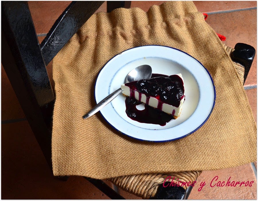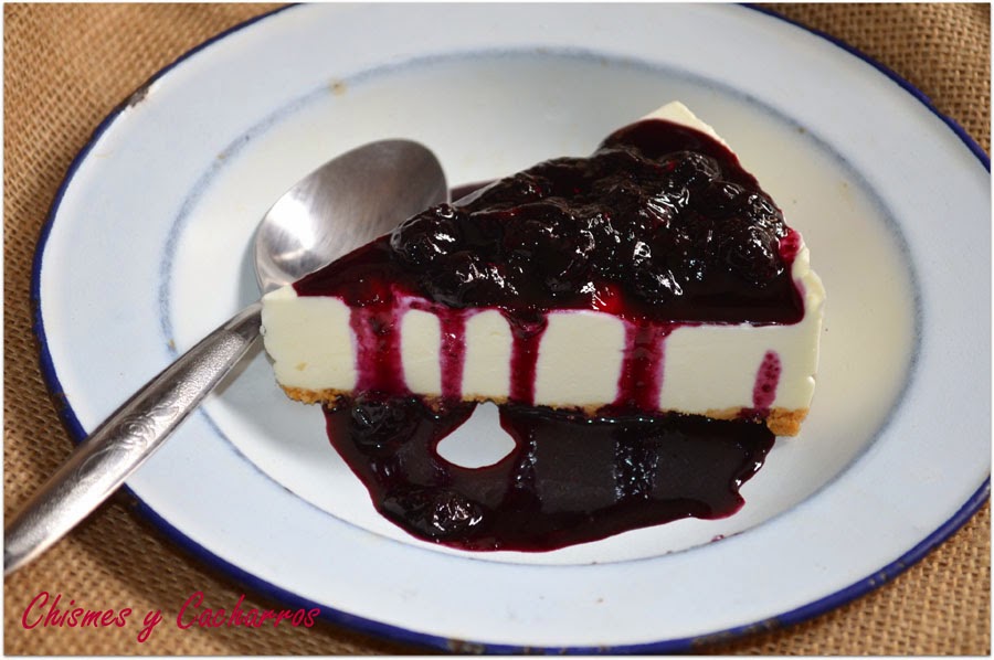 Esta es una tarta clásica y muy pero que muy rica. Se hace en un momento y además el toque de los arándanos es brutal. Por cierto estos arándanos eran muy dulces por eso le añadí poco azúcar pero no todos son tan dulces, estaban buenísimos.