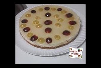Volcamos al molde sobre la base de galletas, colocamos las uvas en forma decorativa y
