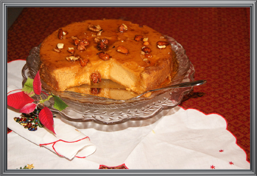 Les prometo que esta tarta de calabaza es delicisa, y tan sedosa como el terciopelo sin tener textura de puré de bebé. Describiría la textura entre un flan y un bizcocho. Deja una sensación