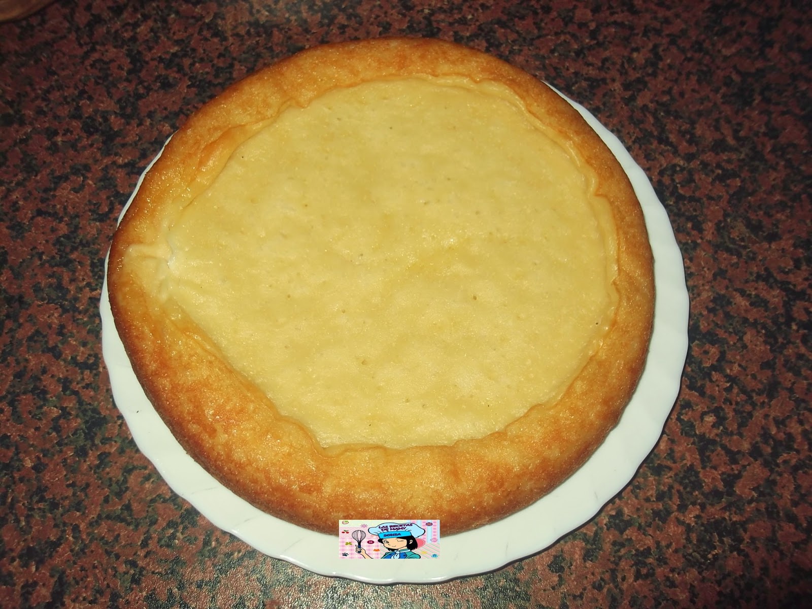 Volcamos sobre la tarta y extendemos por toda la superficie