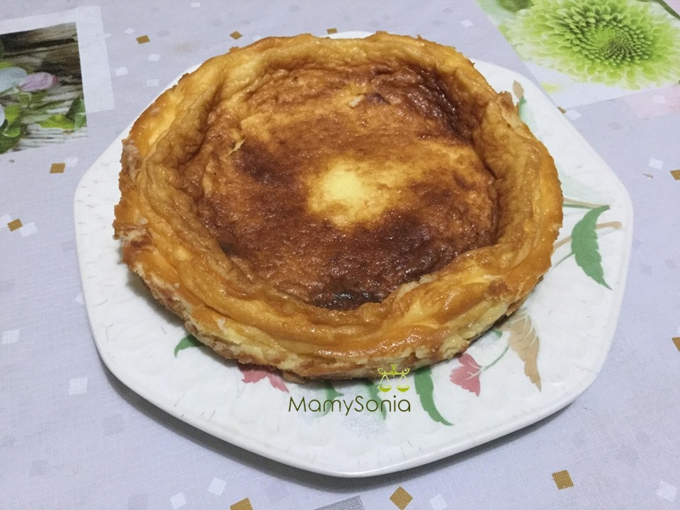Bajamos el horno a 200º, y horneamos unos 50 a 60 minutos. Si vemos que se dora mucho (Aunque esta tarta debe de quedar bien doradita), ponemos en los últimos minutos papel encima.Pinchamos con aguja, si sale limpia ya está. Apagamos el horno, entreabrir la puerta y dejamos unos 15 minutos dentro. Sube mucho y después se baja, es normal.