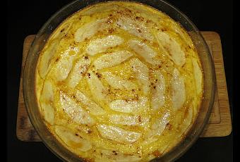 Ponemos en la jarra los huevos, el queso los yogures, la leche, la nata y el azúcar. Programamos velocidad 5 durante 15 segundos. Añadimos la harina y ponemos velocidad 5 durante 15 segundos. Echamos la manzana en cuadraditos y realizamos la misma programación.
