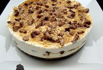 Para la base:- 150 grms de galletas digestive.- 70 grms de mantequilla.- 2 cucharadas de azúcar moreno.Para el relleno:- 300 grms de queso ricotta o queso de untar.- 1 yogur griego (de 200 grms).- 100 grms de azúcar.- 200 grms de nata montada.- 6 grs de Cola de Pescado (3 hojas).- 2 chocolatinas mars.- 1 cucharada de miel.Para cubrir: - 1 chocolatina mars.- 2 cucharadas de azúcar moreno.- 1 cucharada de miel.- avellanas picadas (unas 15).
