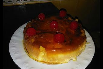 Elaboración:Echamos en el fondo del molde el caramelo y en un recipiente hondo ponemos el resto de los ingredientes (3 huevos, 3 yogures naturales, queso crema, azúcar y Maizena). Batimos bien con una batidora y lo echamos encima del caramelo.