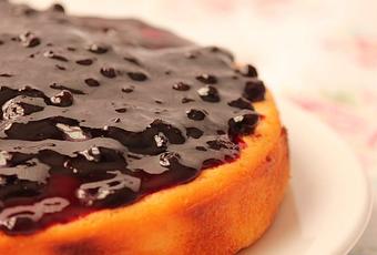 Extendemos una capa de mermelada de arándanos por la superficie de la tarta.