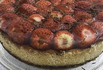 Una vez tengamos la gelatina casi a temperatura ambiente la vamos dejando caer sobre las fresas, no moveremos la tarta hasta que la gelatina empiece a endurecer, en ese momento la conservaremos en la nevera hasta el momento de servir. Podemos espolvorear con un poco de chocolate rallado.