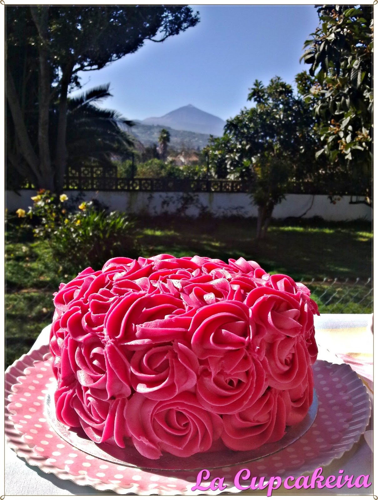 La tarta con buttercream de chocolate blanco y frambuesa con bizcocho victoria!!! Y el Teide de fondo!!!
