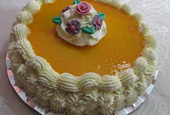 Cubrimos el ultimo disco con la capa de yema, y decoramos por los costados y el borde del disco con la nata , si con la nata hacemos un circulo, al rededor del ultimo disco antes de echar la yema, nos va a ayudar a que la yema se mantenga y no se caiga por los lados.