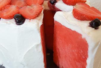 Ya tenemos muchas frutas de verano en nuestros supermercados y es época de que empecemos a disfrutar de ellas. Esta tarta de sandía es especialmente refrescante, sencilla y rápida de realizar. Además podemos entretener durante un rato a los más pequeños de la casa ayudándonos a realizarla. podemos decorarla con diferentes frutas y modificar la cobertura por yogur, nata montada, frosting... Vamos a usar una sandía que no tenga pepitas, para que sea más cómoda a la hora de comer. Esta tarta es la sorpresa de muchos invitados ya que casi todo el mundo se espera un bizcocho debajo de esa cobertura blanca.Ingredientes: