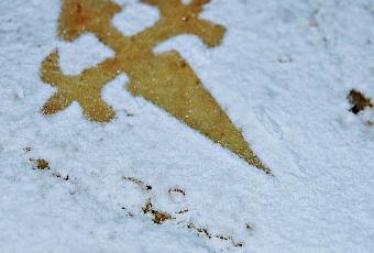 Una vez fría se desmolda y se adorna con una plantilla de la Cruz de Santiago con azúcar glass y canela.