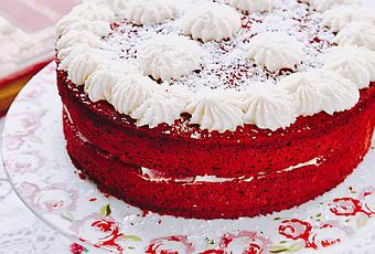 Empezamos con una tarta red velvet, compuesta por dos bizcochos de vainilla coloreados en rojo, de hay su nombre, dos bizcochos súper esponjosos, que se deshacen en la boca. Se rellena y se cubre con crema de queso, yo he aromatizado la crema con sabor a coco, y el resultado es espectacular.