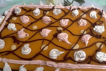 Mientras aún esta caliente lo cubrimos con los bizcochos, y pincelamos estos con un poco de almibar.