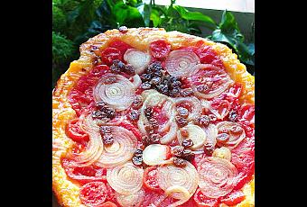 Hoy cenamos una deliciosa tarta de hojaldre y tomate o una Tarta Tatin salada, es muy fácil de hacer y le puedes poner lo que se te ocurra, con la verdura que más te guste. Yo lo hice así.