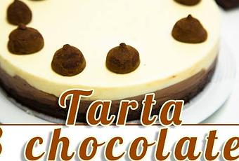 La tarta de tres chocolates es uno de los postres más preciados de los amantes del chocolate. Esta tarta es una tarta fría donde se degusta los tres diferentes tipos de chocolate que encontramos y para prepararla necesitamos lo siguientes ingredientes.INGREDIENTES BASE TARTA200 g de galletas maría100 g de cacao en polvo80 g de mantequillaPREPARACIÓN DE LA BASE