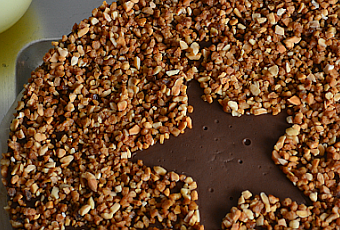 Ahora prepararemos la capa de chocolate. Ponemos al fuego la nata, 250ml de leche ( el resto reservamos ), el chocolate a trozos y el azúcar. Aparte en el vaso de leche que habíamos reservado disolvemos la cuajada y cuando lo que esta en el cazo empiece a hervir añadimos la cuajada disuelta sin parar de remover bajando un poco el fuego hasta que espese.Echamos la mezcla sobre la capa de turrón que habíamos puesto en el molde una ves que esta este cuajada. Dejamos enfriar y metemos al frigorífico. Cuando vayamos a servir espolvoreamos con las almendras picadas.