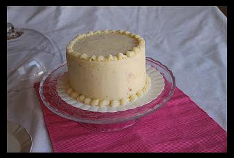 Tenía intención de realizar otro tipo de presentación, pero tuve algunas problemillas, y finalmente he realizado una decoración sencilla con cobertura de crema de mantequilla aromatizada con limón. Pero de este "pequeño fracaso" he aprendido más cosas. Una, esta tarta se desmiga fácilmente, debido a que tiene trozos de piña y nueces, con lo que no es posible, cortar los bizcochos, ni para alisar o igualar, ni para rellenar. Os cuento, hice dos bizcochos con la intención de cortarlos cada uno en dos, desistí nada más comenzar.