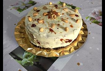 Esparcimos los frutos secos que hayamos elegido por toda la superficie, yo con caramelos he hecho dibujos y también los he puesto de adorno. Llevamos nuevamente al frigorífico hasta 20 minutos antes de servir.