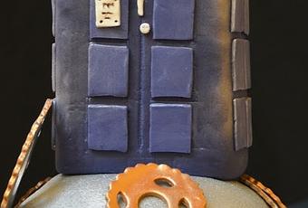 Reconozco que no había oído nunca hablar del Dr. Who hasta que un sobrino empezó a coleccionar todo tipo de objetos relacionados con él. Para los que como yo estén todavía ignorantes de la existencia de este Dr. Misterio, decirles que se trata de una serie de TV británica, producida por la BBC, de ciencia ficción y que levanta verdaderas pasiones en seguidores de todo el mundo. Empezó a emitirse nada menos que en 1963 y con algunas interrupciones continúa emitiéndose a día de hoy. La serie muestra las aventuras de un Señor del Tiempo conocido como «el Doctor», que explora el universo en su TARDIS, una nave espacial con conciencia propia capaz de viajar a través del tiempo y el espacio. Por fuera, simula ser una cabina de policía azul, que era un elemento común de las calles del Reino Unido cuando la serie comenzó en 1963. Con la ayuda de distintos acompañantes, el Doctor se enfrenta a una variedad de enemigos mientras salva civilizaciones, visita tanto el pasado como el futuro, ayuda a gente común y corrige injusticias. ¡Un hacha, vaya!. Cuando decides hacer una tarta a alguien con ese nivel de afición a algo, la decisión es muy fácil. Sólo faltaba documentarse un poco y aquí tenemos nuestra tarta. Con Tardis y unos engranajes oxidados que formaron parte de la cabecera de una de las temporadas y buscando inspiración en Pinterest.