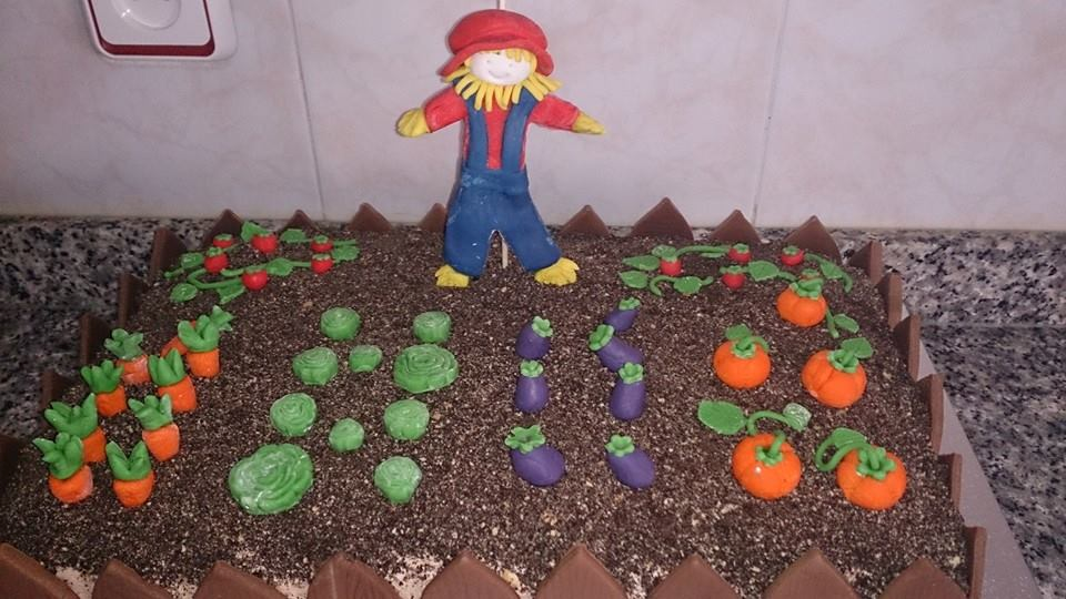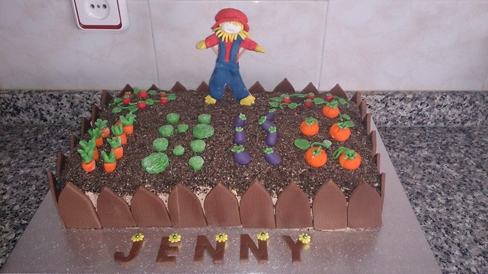 Diana, quería sorprender a Jenny el día de su cumpleaños con una tarta huerto. Tan solo espero, que la disfrutéis tanto, como yo he disfrutado de hacerla.... besitos para las dos y felicidades Jenny!!!