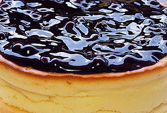 Para la tarta de queso:- 6 huevos (separadas las claras de las yemas).- 2 cucharadas de mantequilla fundida (unos 50 grms).- 50 grms de harina de maiz (maizena).- 600 grms de queso de untar.- 200 grms de nata líquida.- 80 grms de harina.- Ralladura de 1 limón.- 250 grms de azúcar.- 2 cucharadas de leche.- 1/2 cucharadita de cremor tártaro.Para la cobertura:- Fruit filling de blackcurrant (memelada de grosella negra).* Podemos utilizar otro tipo de mermelada como de moras, arándanos, frambuesas ó grosella negra...
