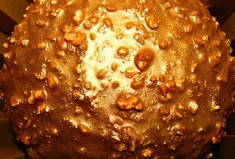 Uniremos las dos partes que habremos desmoldado y ellas solas se unirán a medida que vaya descongelando. Lo cubriremos con paciencia con las avellanas picadas.