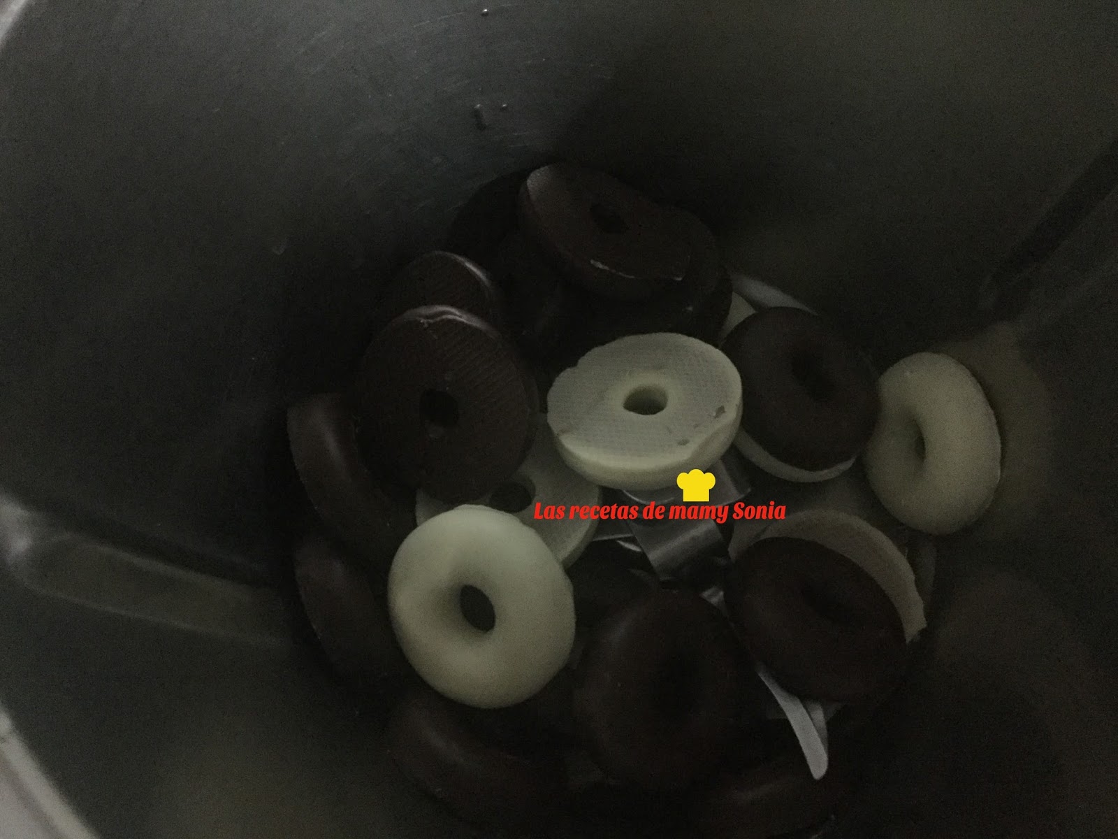 y alrededor de todo el molde yo he puesto uno blanco uno de choco, pero si queremos