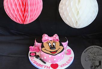 Bueno aquí tenéis nuestra versión de la conocida tarta con la forma de la cabeza de Minnie que circula por la red. Se puede encontrar muy fácilmente un paso a paso para hacerla (lo encontré después de tenerla hecha).
