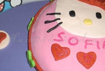 Lo primero que tenía que hacer era pensar el dibujo que le iba a poner al fondant, y enseguida me vino a la cabeza "Hello Kitty", ya había tejido un jersey con esa gatita a mi hija cuando tenía un añito, por lo que para mí tenía un motivo muy especial.