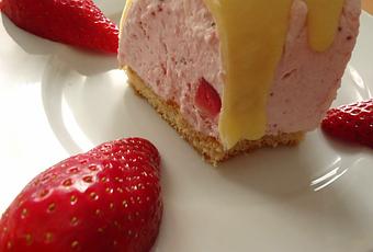 4. Sacamos todo lo que guardamos en el frigorífico y vamos añadiendo en el bol de la nata montada las fresas trituradas y troceadas. Revolvemos bien con movimientos envolventes teniendo cuidado de que no se nos baje mucho la nata. Para terminar vamos añadiendo muy poco a poco la mezcla de gelatina y ron. Aquí se nos bajará la nata debido al contraste de temperatura con la gelatina. Revolvemos todo bien.
