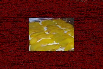 Finalmente cubrimos con la mezcla y decoramos por último con los melocotones.