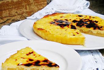 Ingredientes para 6 personas: Masa de hojaldre ¼ l. de leche 1 c/p de azúcar avainillado 3 huevos 75 gr. + 1 c/s de azúcar 3-4 peras Una nuez de mantequilla