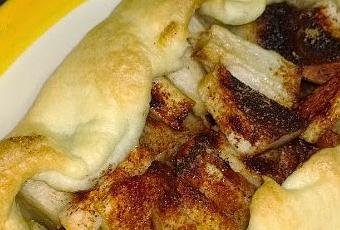 Colocar sobre las manzanas un poco de azúcar y canela, a gusto. Doblar el excedente de la masa sobre la preparación.