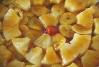 TARTA INVERTIDA DE PLÁTANO Y PIÑA (VERSIÓN DE LA TARTA TATIN)Ingredientes:Para la masa50 gr. de almendra molida100 gr. de harina 75 gr. de mantequilla , 75 gr. de azúcar , 1 yema de huevo