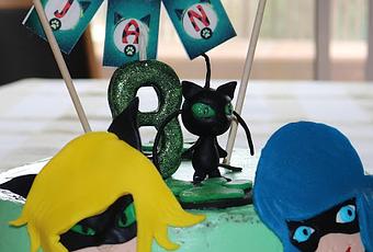 Jan el día 6 día de reyes y como cada año le he hecho su tarta este año ladybag y catnoir, sus dibujos preferidos.